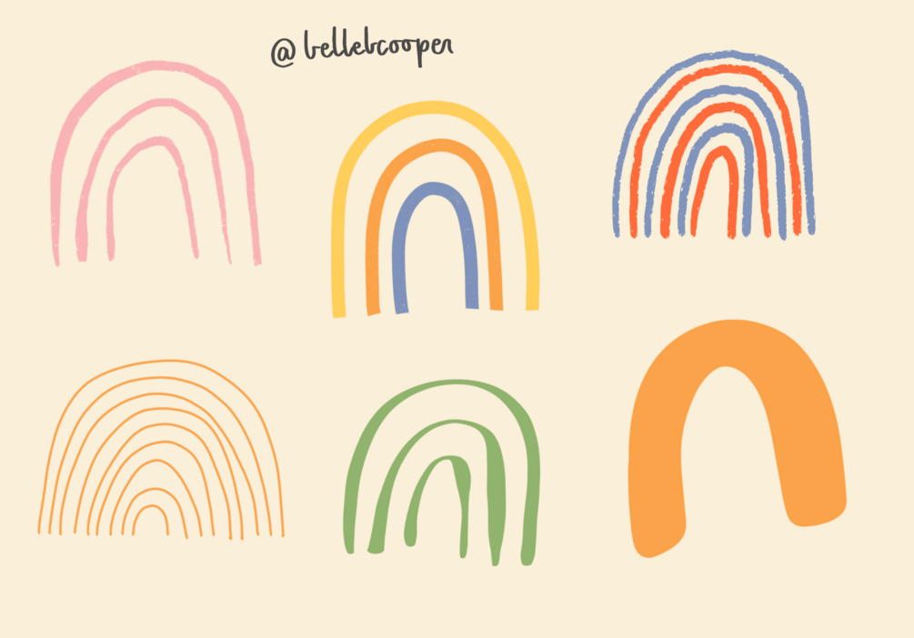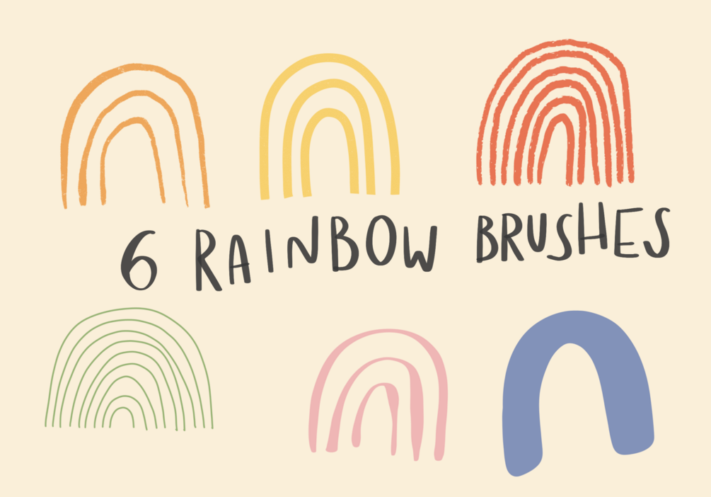 Free pack of 6 hand-drawn rainbow stamp brushes for Procreate. Enjoy!